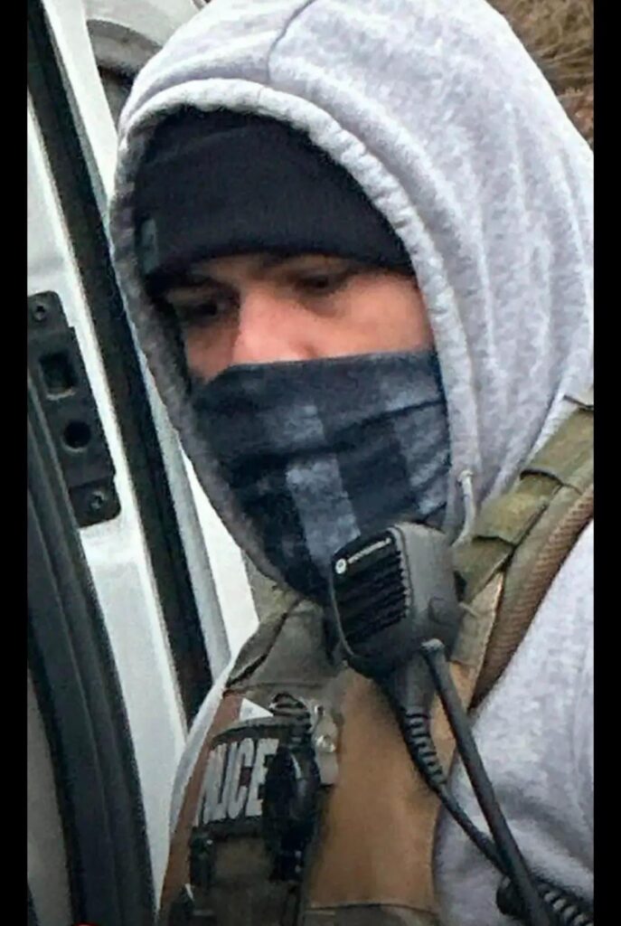 Officer Description: White male, medium build, shaved short brown hair, unimpressive beard and mustache. Appears to be involved in the Nitro raid.